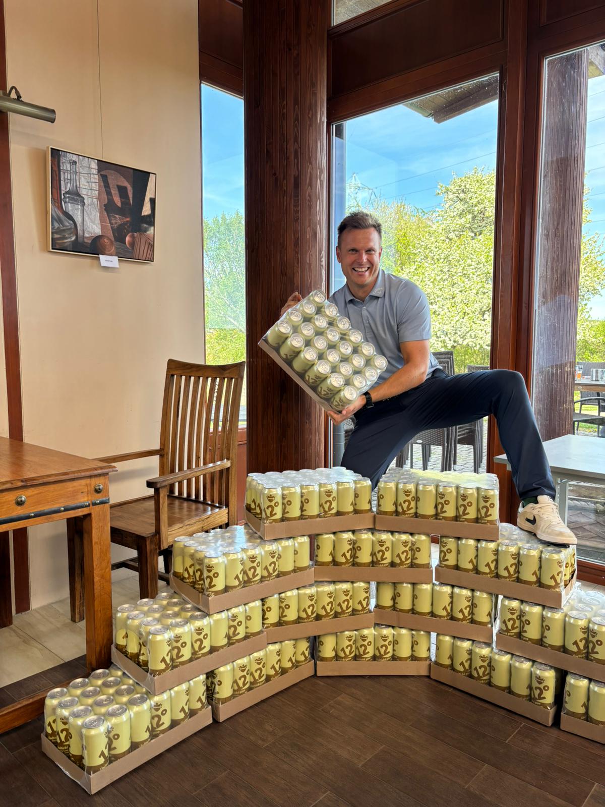 Prvním majitelem 360 plechovek Únětického piva v golfové sezóně 2026 se stal v sobotu 25.4. na Slapech Martin Tvrz.